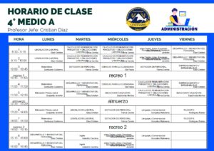 HORARIO SEMANAL 4° MEDIO A - ADMINISTRACIÓN - Liceo Bicentenario de Excelencia Técnico Profesional Centenario